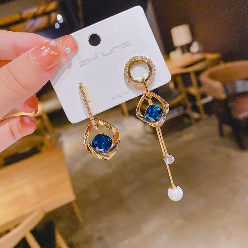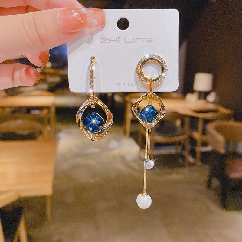 - Design : Boucles d’oreilles asymétriques avec perles bleues élégantes
