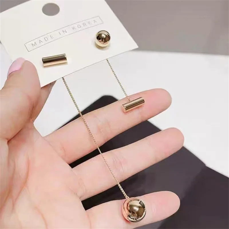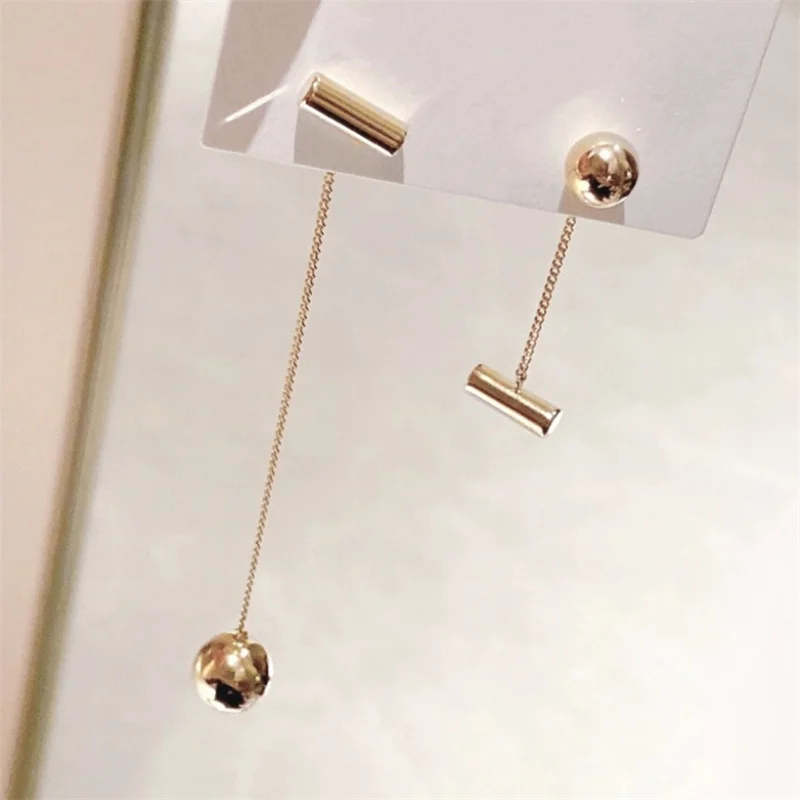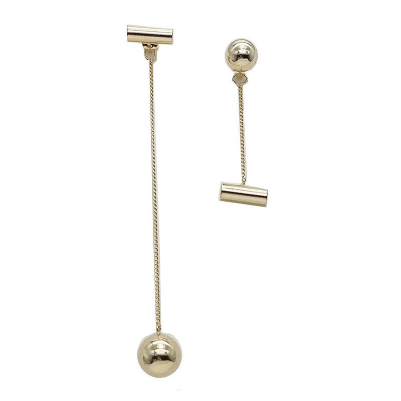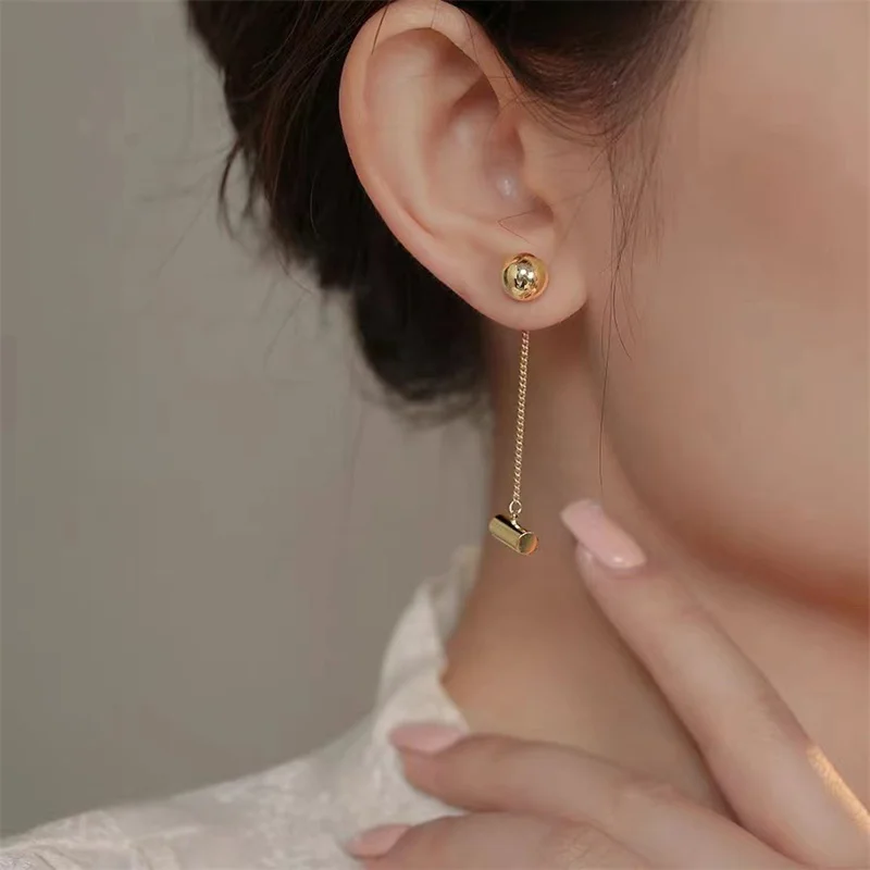 Le modèle Cylia réinvente l’asymétrie avec un équilibre audacieux entre légèreté et structure. L’une des boucles arbore une chaîne longue ultra-fine suspendant une perle dorée effet miroir et une forme cylindrique lisse, pendant que l’autre reste plus discrète avec des éléments géométriques simples. Le style est minimaliste, mais visuellement impactant. Parfaites pour celles qui aiment les bijoux fins et modernes, ces boucles ajoutent une touche sophistiquée à n’importe quelle tenue. Leur finition dorée brillante accroche la lumière avec élégance, tandis que la forme allongée affine la ligne du visage.