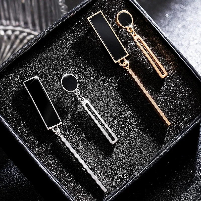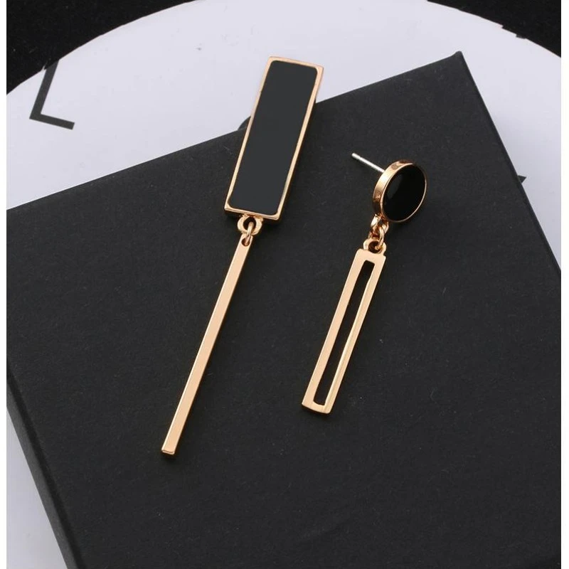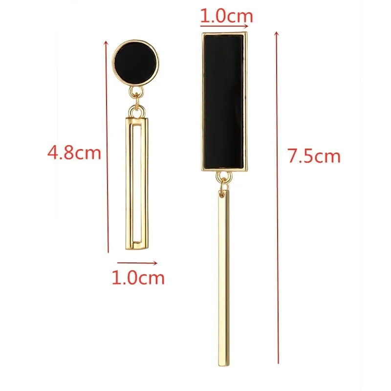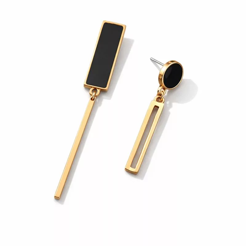 Boucles d’oreilles asymétriques modernes en émail noir et doré. Design géométrique élégant pour femme. Idéal pour un look tendance, minimaliste et original.