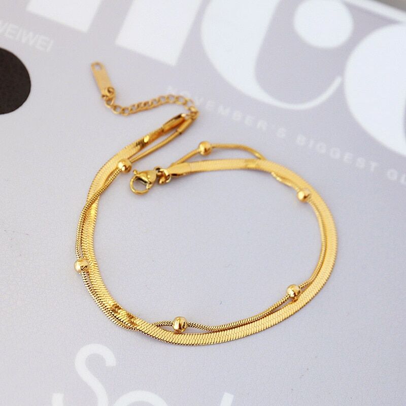 Bracelet Chaine de Cheville Acier Inoxydable Double: découvrez l’accessoire de bijoux qui rehaussera instantanément votre style. Fabriqué avec soin en acier inoxydable doré de bonne qualité, ce bracelet de cheville incarne l’élégance et la fantaisie.