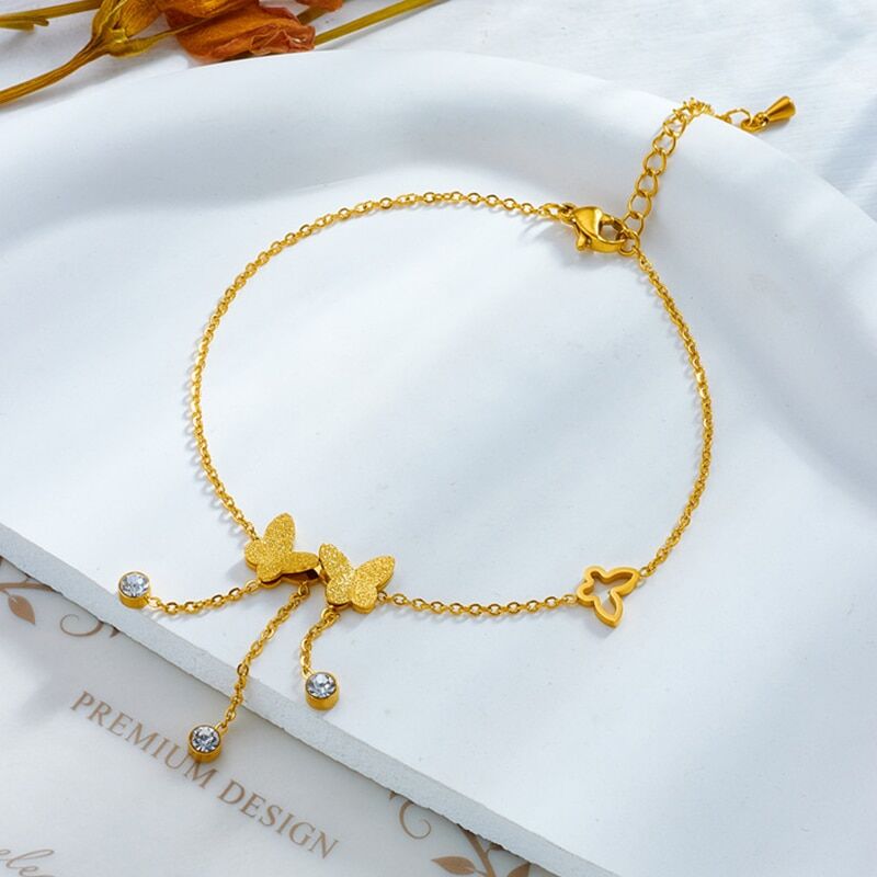 Bracelet de Cheville Bijoux Papillon Femme : Élégance Délicate. Découvrez notre ravissant bracelet de cheville acier inoxydable papillon, le parfait mélange entre élégance et douceur de papillon.