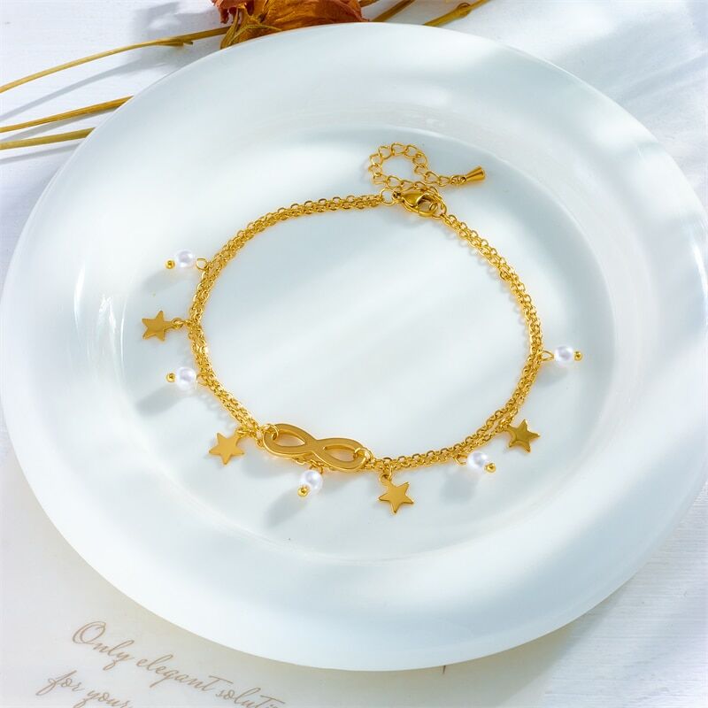 bracelet de cheville acier inoxydable perle bohème infini, une pièce exquise qui allie l’élégance moderne au charme intemporel des perles. Conçu pour sublimer vos pieds