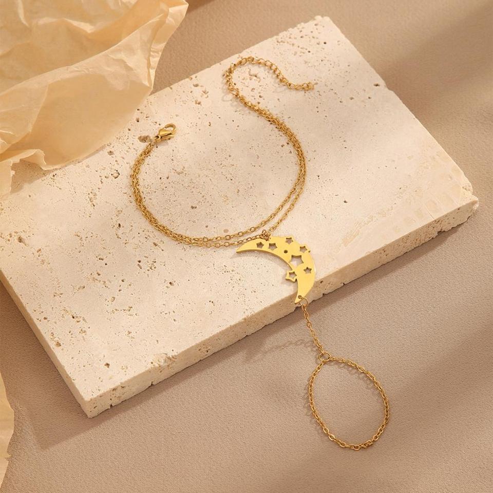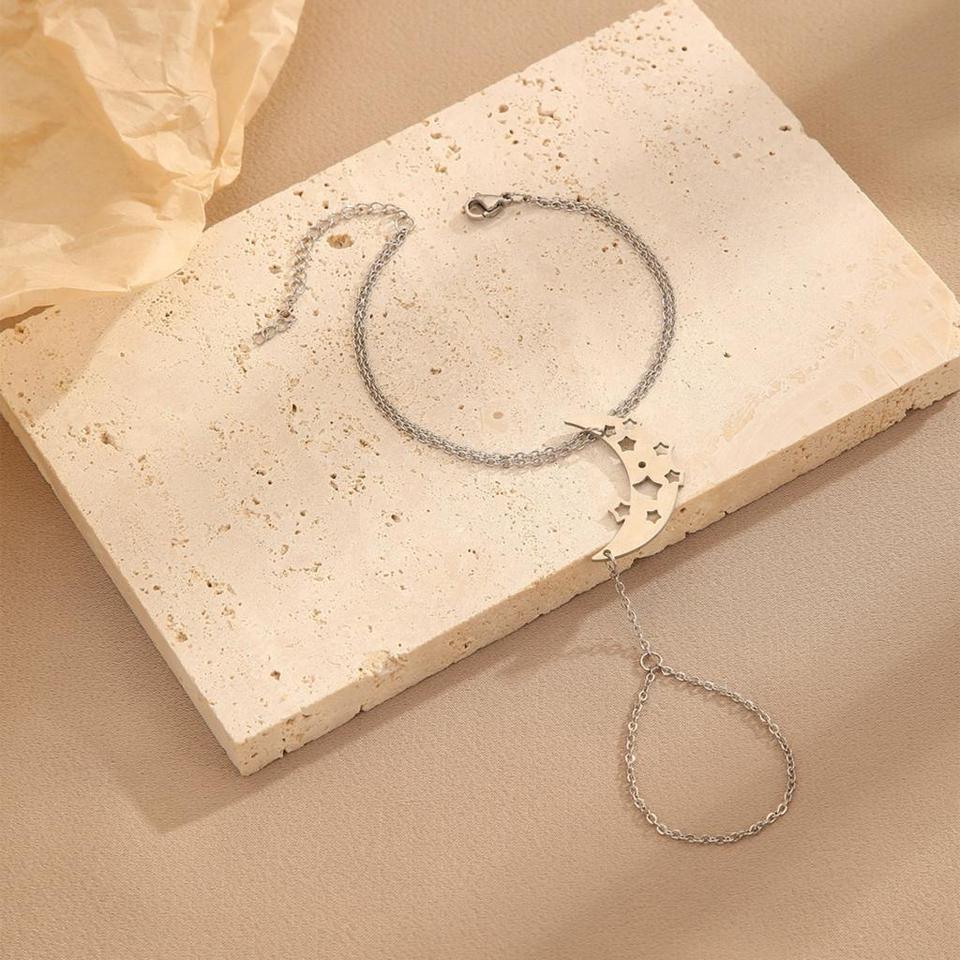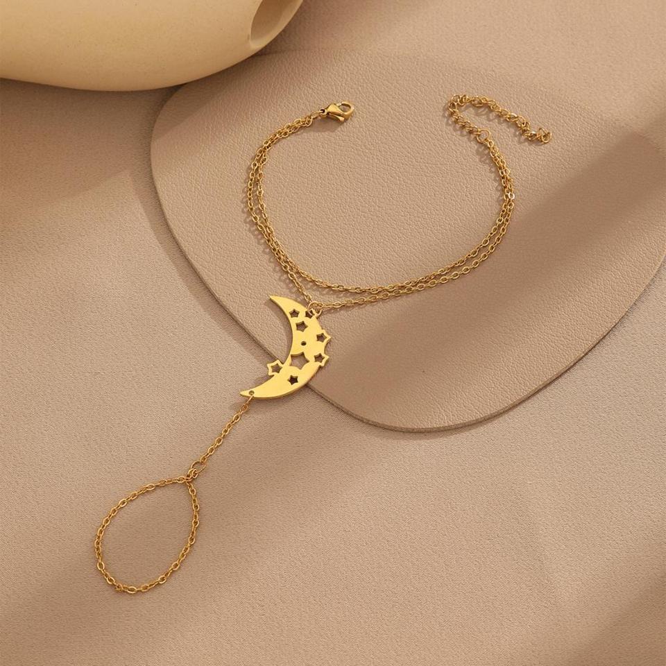 chaine de cheville et doigt combinaison unique d’inspiration indienne, de charme lunaire et de finition dorée et argent en acier inoxydable