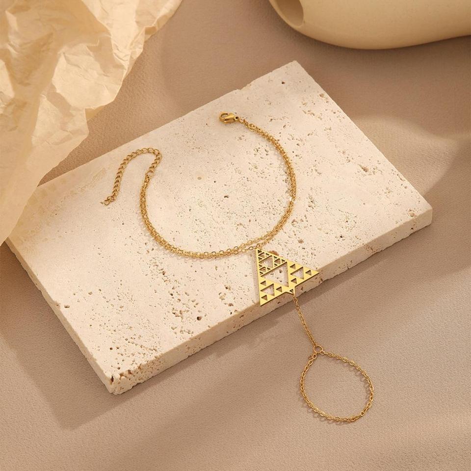 - Design Élégant : La délicate pyramide dorée, finement suspendue à votre cheville, ajoute une touche de sophistication géométrique à votre style.