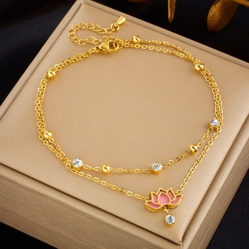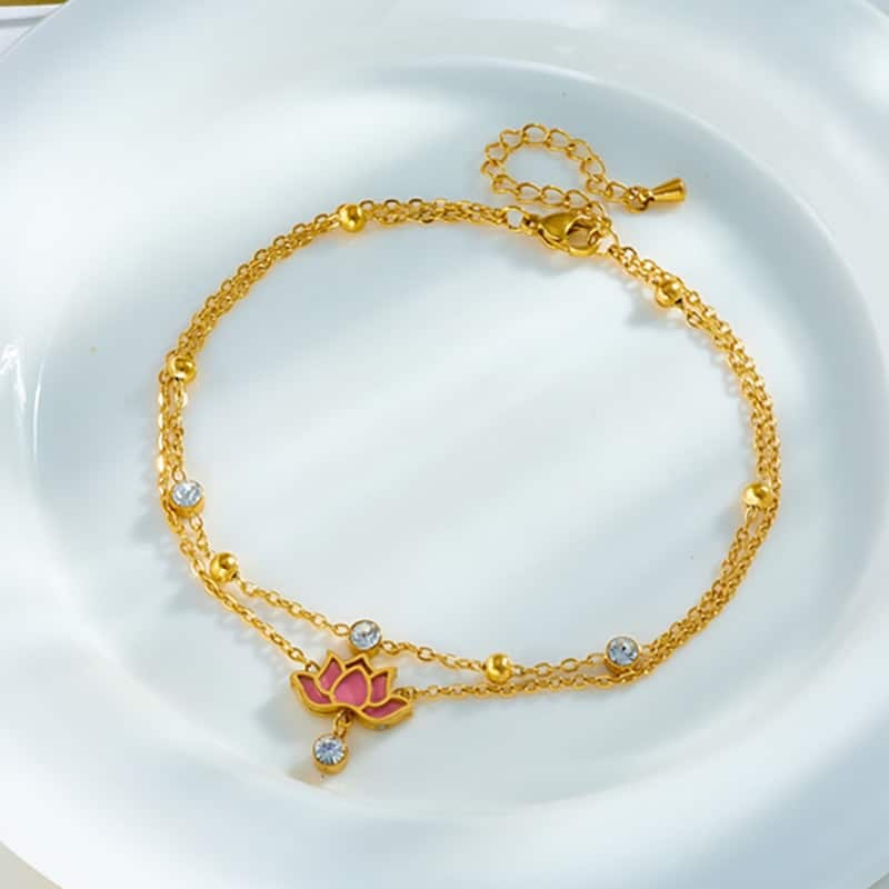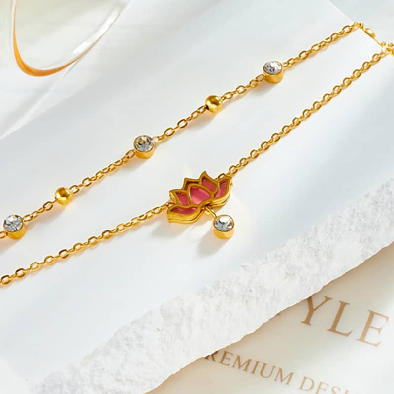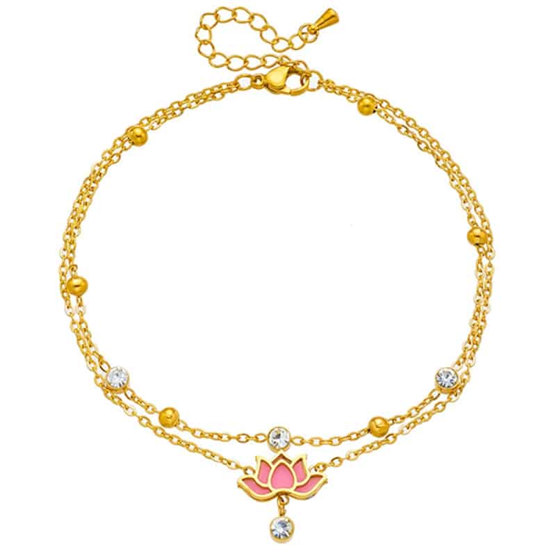 - Symbole du Lotus : Le lotus est bien plus qu’une fleur. C’est un symbole de pureté, de renaissance et de croissance spirituelle. Ce bracelet de cheville capture la signification profonde du lotus et l’incorpore dans un bijou élégant.