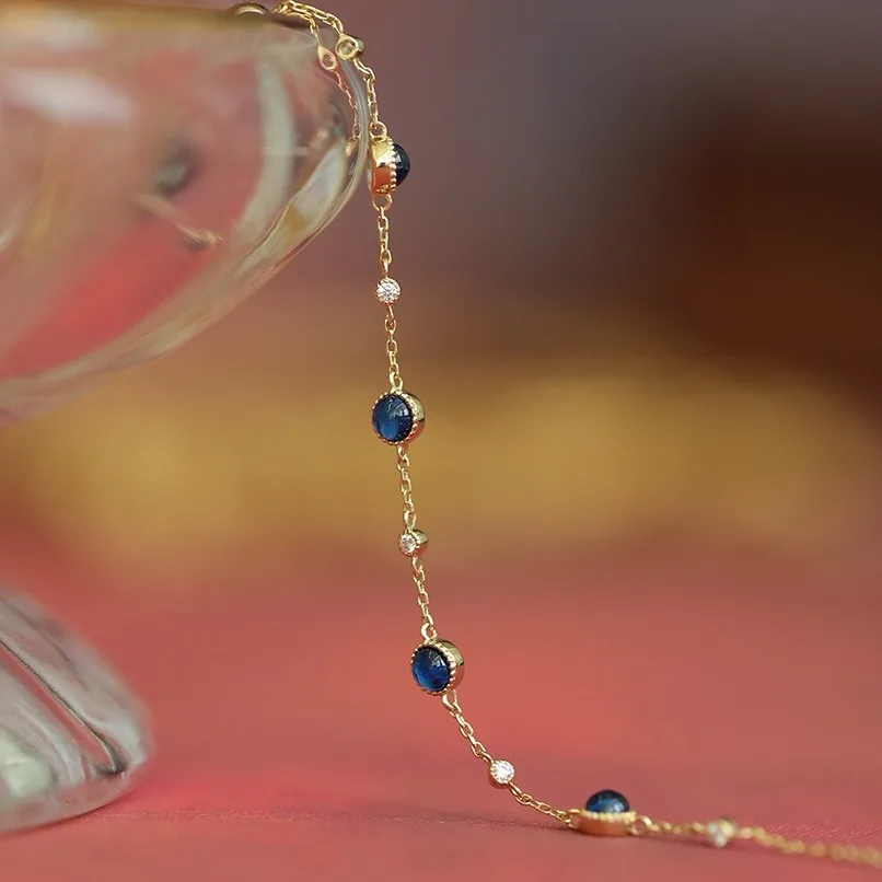 Bracelet fin chaine doré avec pierres bleues – Liora