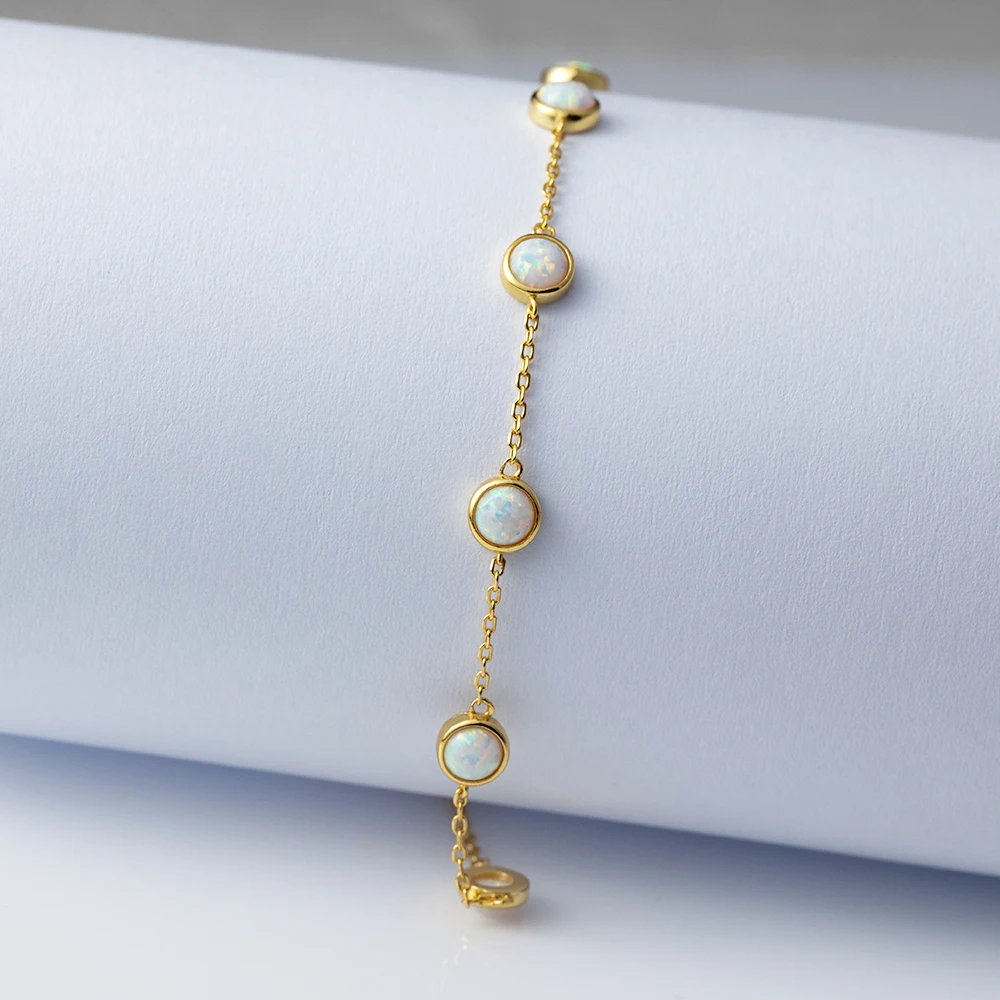 Bracelet fin en acier doré avec 7 pierres opales – Yuna