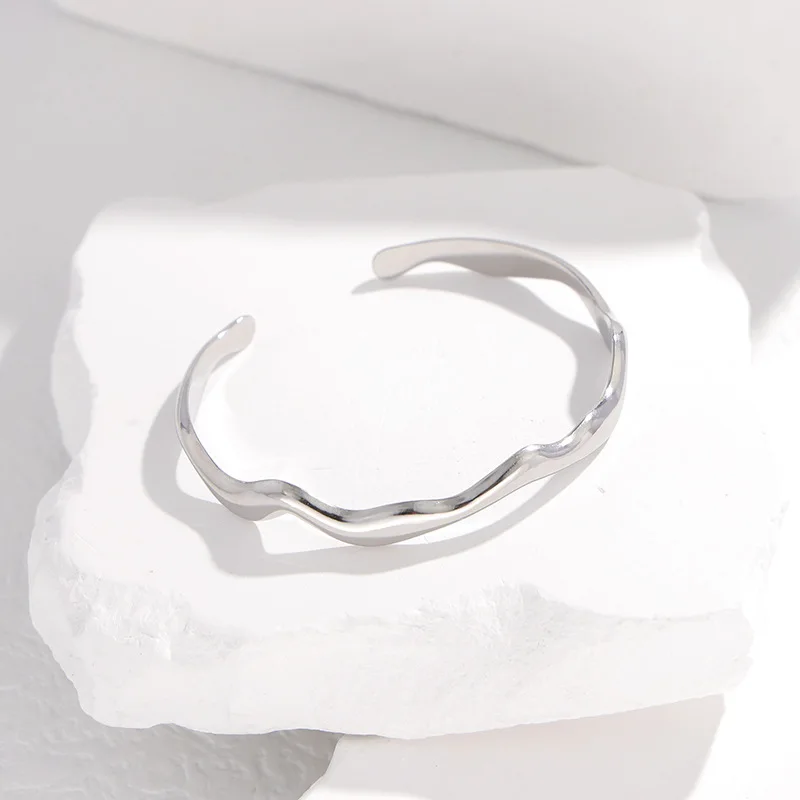bracelet jonc en acier inoxydable femme arborant un motif zigzag unique