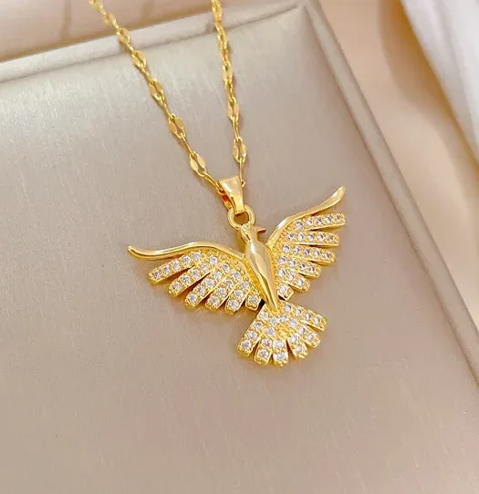 Collier Aigle Femme en Acier Inoxydable doré puissance et féminité