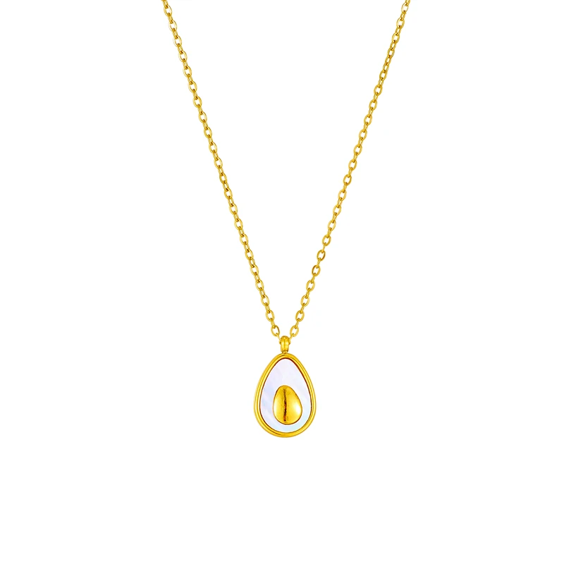 Collier acier inoxydable doré avocat design délicat qui se marie parfaitement avec la chaîne de 40 cm, agrémentée d’une chainette réglable de 5 cm