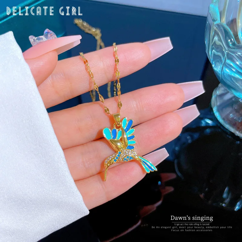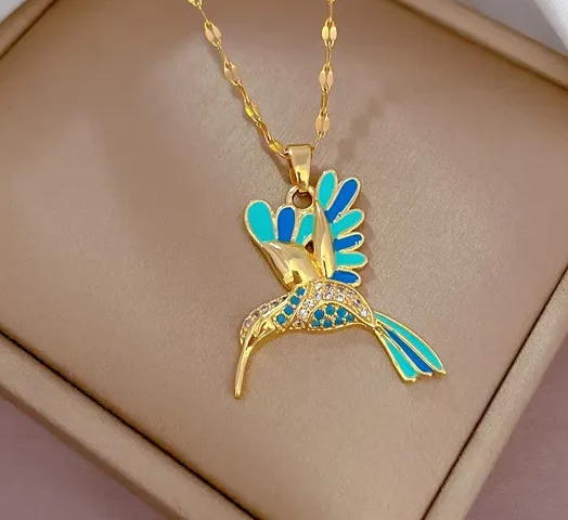 Collier Acier Inoxydable Doré : Élégance avec Colibri Bleu Découvrez notre collier en acier inoxydable doré, sublimé par un pendentif colibri aux tons de bleu. Cet accessoire délicat offre une touche artistique à votre style.