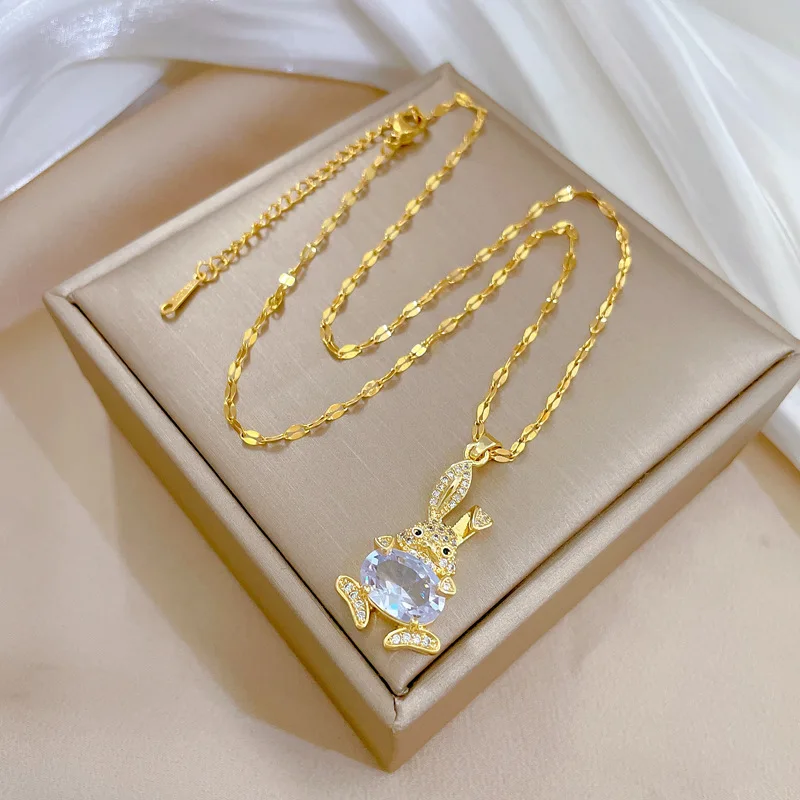Collier Acier Inoxydable avec Pendentif Lapin – Élégance Ludique pour Femme Affirmez votre style avec notre Collier en Acier Inoxydable pour Femme, une fusion parfaite d’élégance et de charme ludique.