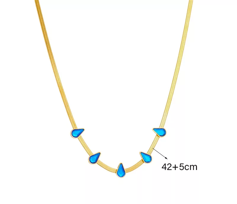 collier acier inoxydable goute d’eau bleue Affirmez votre style avec notre collier au design captivant, orné d’une perle bleue en forme de goutte d’eau, délicatement suspendue à une chaîne serpent. Conçu en acier inoxydable de haute qualité,